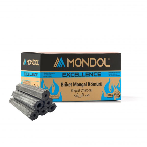 Mondol Briquette Charcoal is obtained by charring various natural biological shells (such as pistachios, hazelnuts, walnuts), crushing with high pressure and grinding and compressing. No chemicals are used during production. Corn starch suitable for food is added as binder. The formulated coal is shaped by passing through various perforated and non-perforated molds. Easily burning, high calorie, densely compressed coal emerges. Due to this structure, it has 5-6 hours of burning and 4-5 hours of efficient cooking time. It has a very long burning time and high calories compared to other charcoal. It gives heat calories stably, so it provides an efficient cooking without burning meat, and it also contributes to your pocket because it is up to 3 times more efficient than charcoal. Since it is made from biological products, it does not produce soot. It is a completely healthy cooking method.